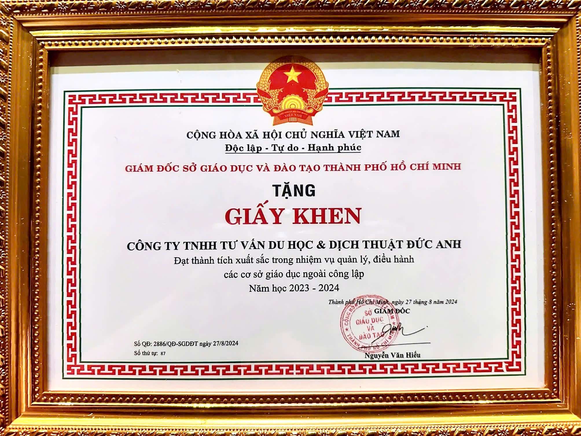- Awarded the Certificate of Merit for “Excellent Achievement in Managing and Operating Non-public Educational Institutions, Academic Year 2023–2024” – by Ho Chi Minh City Department of Education and Training;