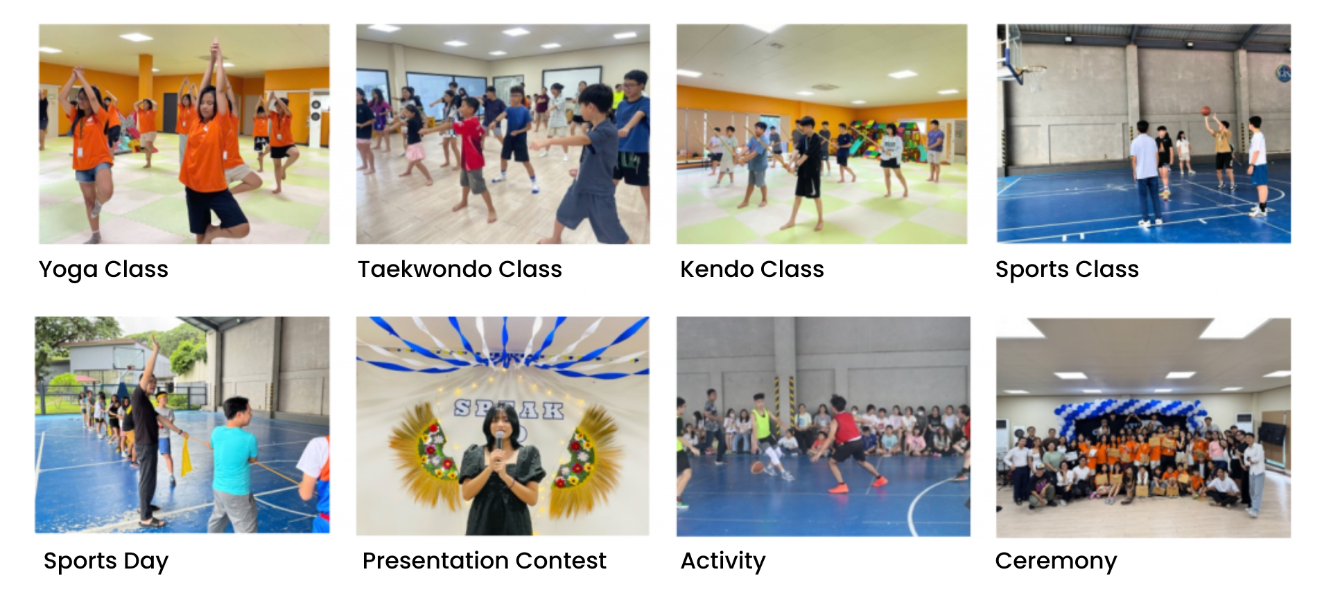 • Sports class (1 period): Taekwondo, Yoga, Kendo, and other sports.