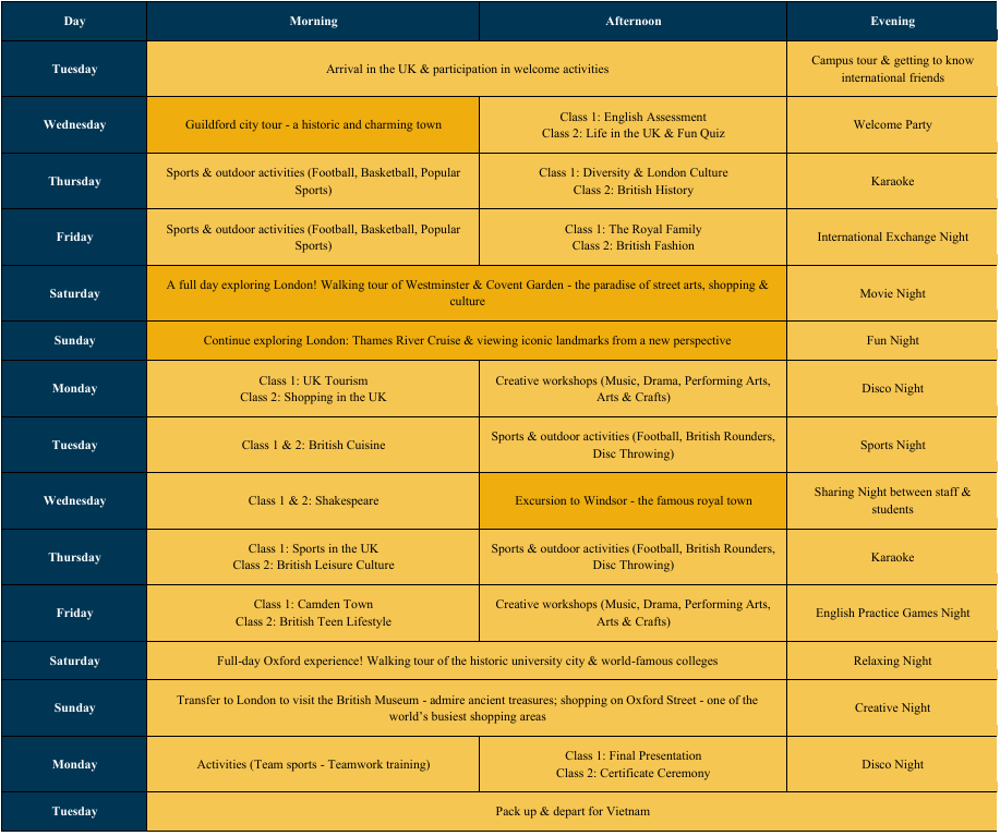 • A dedicated team leader from ABC Education Group accompanies the students from Vietnam throughout the entire program.