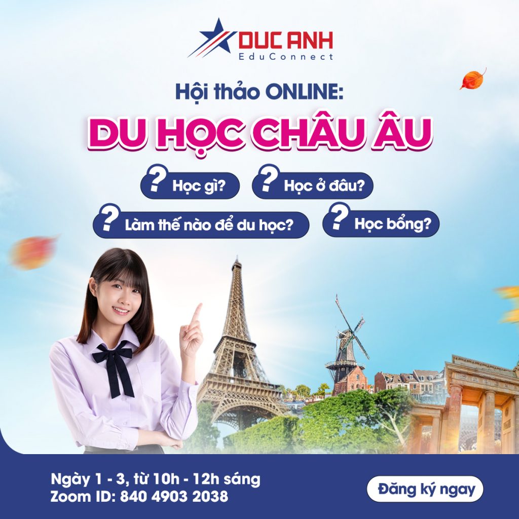 • Mời dự Hội thảo Online: CHÂU ÂU: DU HỌC GÌ – Ở ĐÂU & NHƯ THẾ NÀO?