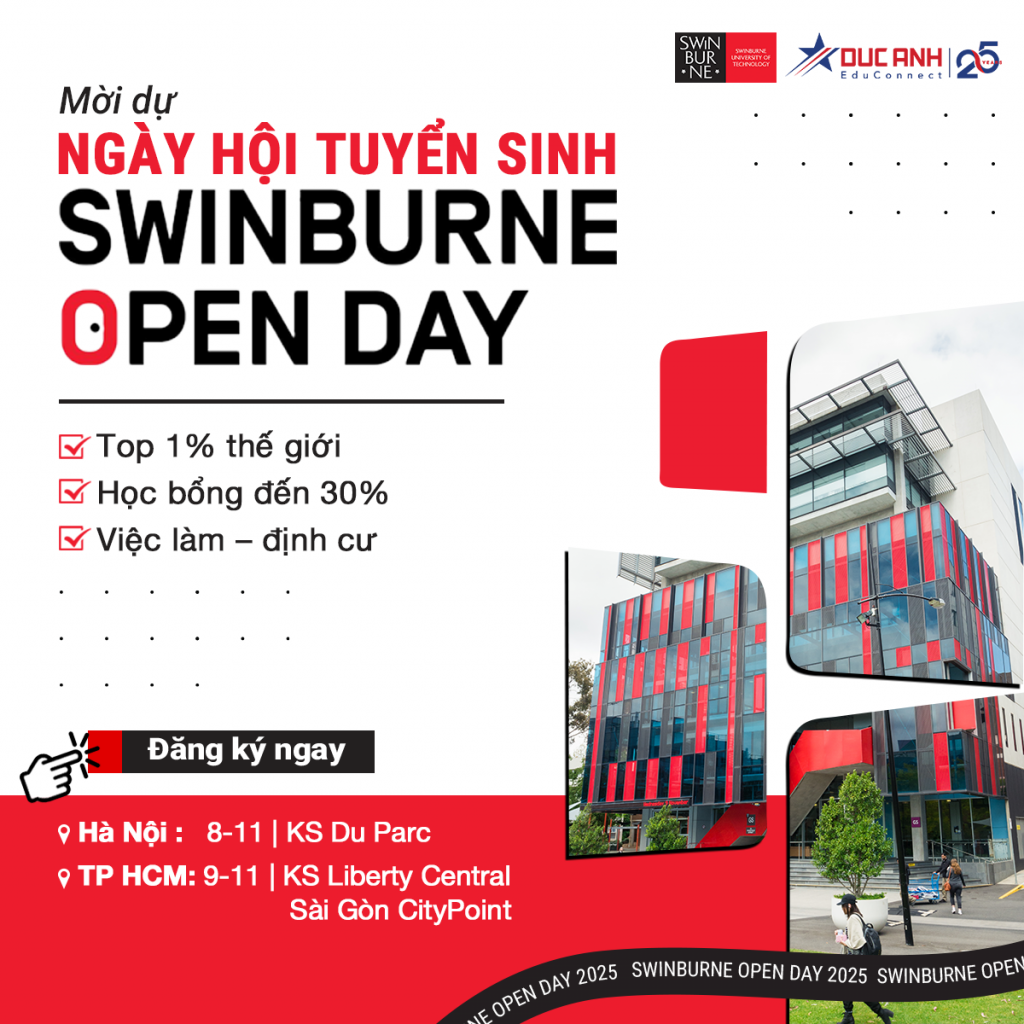 • Mời dự SWINBURNE OPEN DAY 2025: Trải nghiệm Đại học Top 1% thế giới