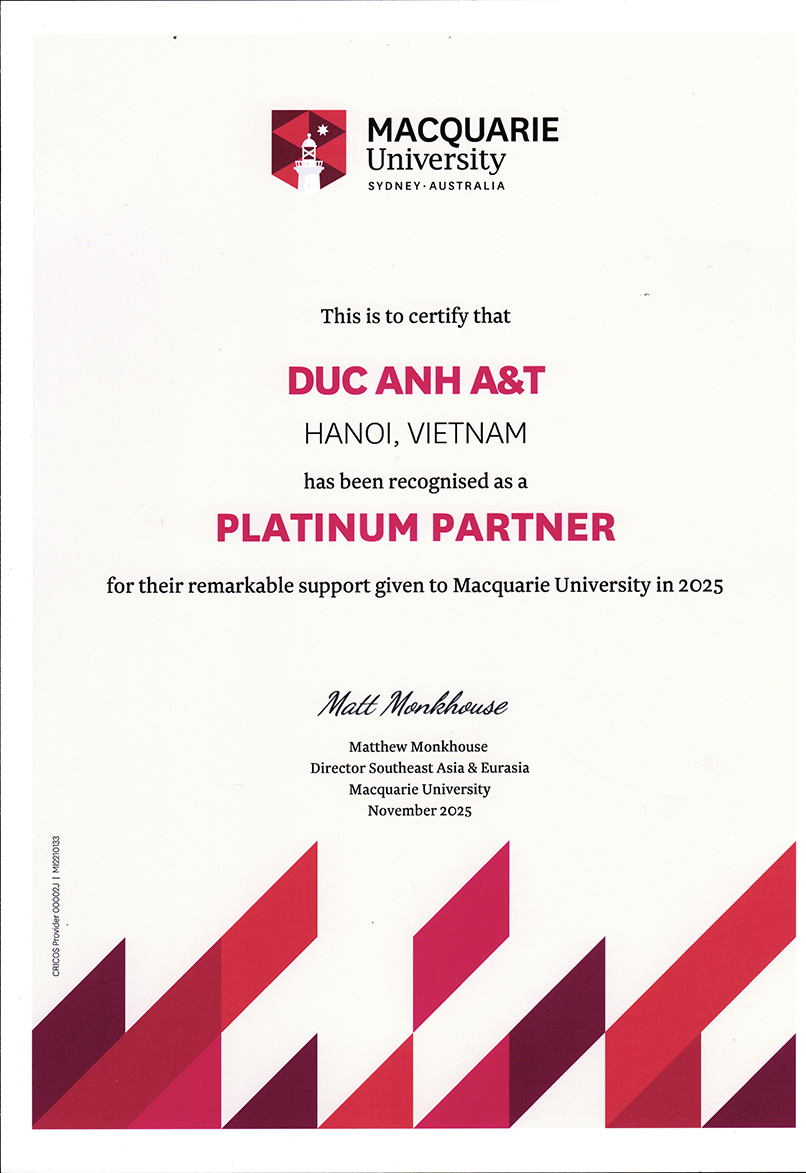 - Được trao giải “Platinum Partner”, 2025- bởi Đại học Macquarie, Úc;